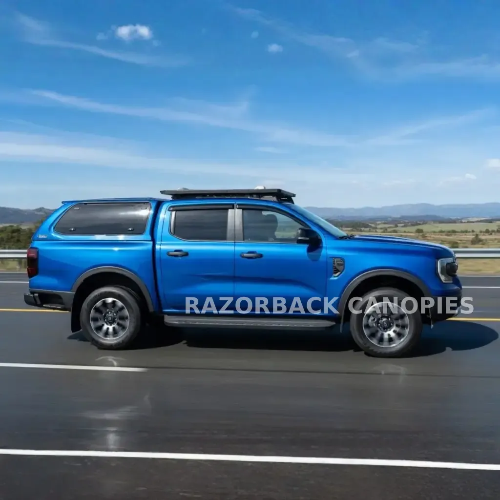 Next Gen Ford RangerRazorback Fibreglass Canopy Clean lines, contoured to your Ranger’s style. The Razorback Fibreglass Canopy for the Next Gen Ford Ranger is the ultimate in quality and features. Central locking on rear door as standard Stylish, aesthetic design Light weight & strong Canopy Clamps On To Your Vehicle Roof Tracks Standard - Ready To Take Roof Racks - Suitable For Side Fold Roof Top Tents Interior LED Light Pricing Razorback Fibreglass Canopy $3700Installation $500 Standard features include:Lift up windows (Sliding windows are $100 each side if window change required)Interior heavy duty vinyl liningRoof Rack Tracks – Rated to 100kg onroad / 65kg offroadColour coded to your vehicleWeight: Approximately 80kg Roof Rack Options Rhino Rack Cross Bars $553 + $117 Installation Includes 2 x cross bars with quick release legs. This system allows you to take off and refit your cross bars easily.Suitable for fitting a side fold roof top tent.Net Weight: Approx 5kg Pioneer Platform Contact Us For Pricing Includes Pioneer Platform and quick release legs.Various Size Options Available:Not suitable for fitting a roof top tent as you will exceed the off road rating of the roof racks.Net weight: Approx 27kg (model dependant) SEE PRICING AND MORE INFORMATION - CLICK HERE Want to talk further about a canopy or other options? Phone us on(02) 9627 7000 Submit your enquiry online We Can Ship To you Or Contact us for installation Locations